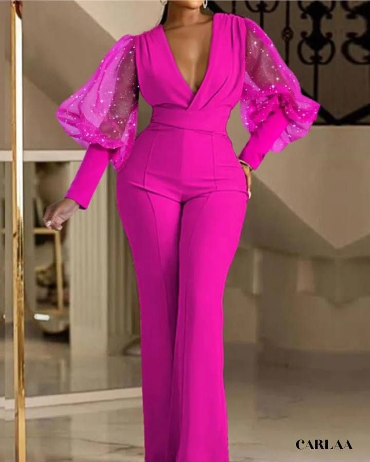 Découvrez notre combi-pantalon élégant, une pièce unique qui attire toutes les attentions. Conçu pour les femmes qui aiment se démarquer, ce vêtement est idéal pour des occasions spéciales telles que les mariages, galas ou soirées élégantes. Laissez-vous charmer par son style innovant qui fera de vous la star de la soirée.