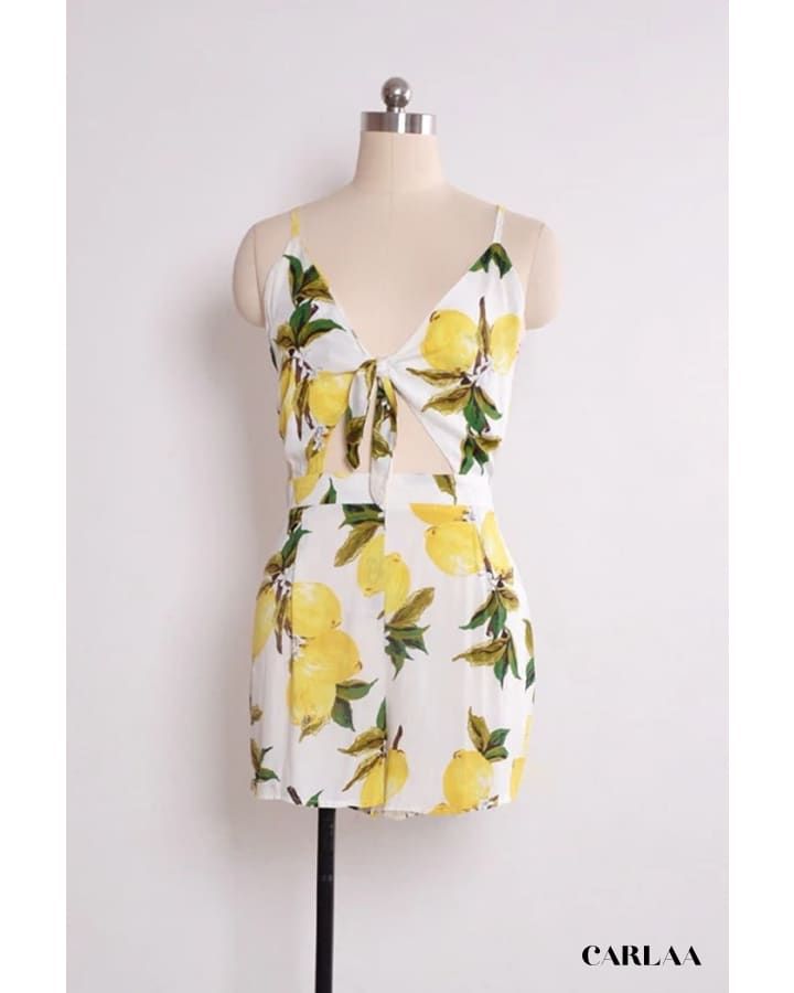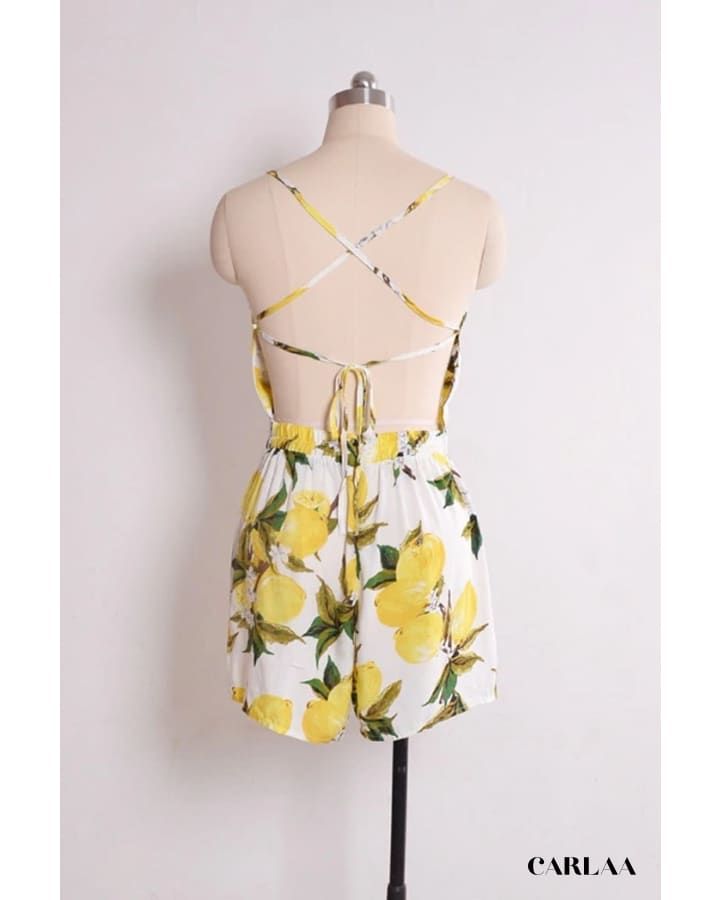 Brillez de mille feux avec le combi-short bretelles motifs citron