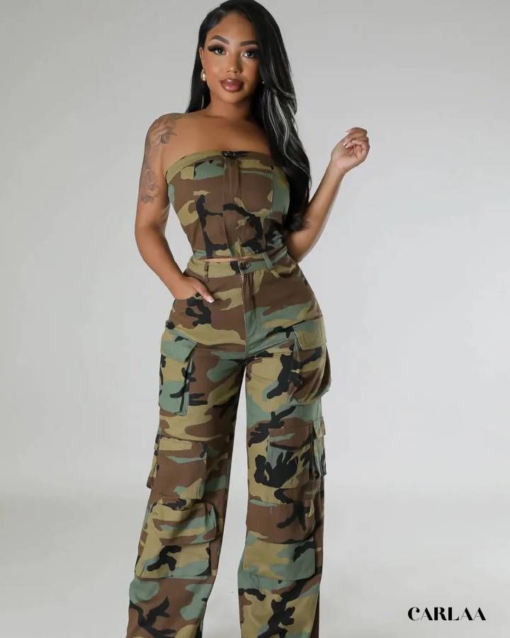 Plonge dans l’univers du style avec notre toute nouvelle Combinaison Camouflage pour Femme.