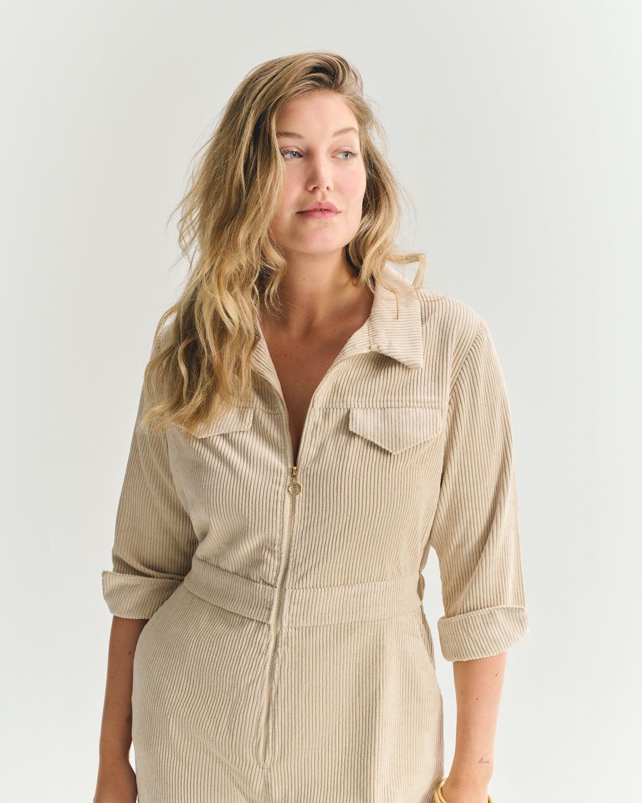 Confectionnée en matière de velours côtelé, la combinaison Curtis vous garantit une douceur et un confort inégalés, ce qui la rend idéale pour un port quotidien. Sa composition de textile de qualité vous enveloppe dans un cocon agréable, tout en préservant une élégance naturelle. Les manches 3/4 ajoutent une touche de sophistication, apportant un équilibre parfait entre style décontracté et chic.
