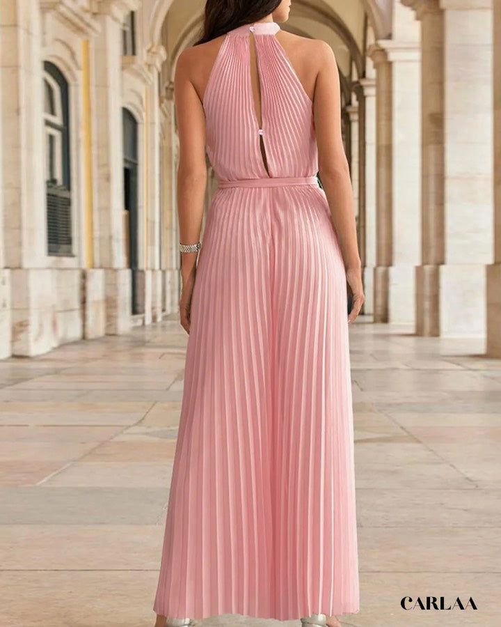 Sans manches et ample, elle offre une liberté de mouvement inégalée, tout en mettant en valeur ta silhouette avec grâce. Le style habillé et chic de cette combinaison te garantit une allure sophistiquée, parfaite pour les cérémonies, les soirées ou les événements importants.