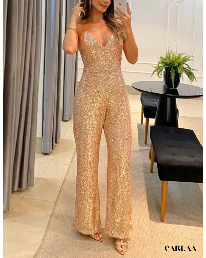 Une combinaison dorée pailletée pour briller en toute occasion