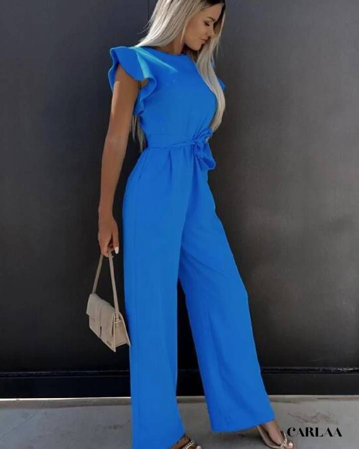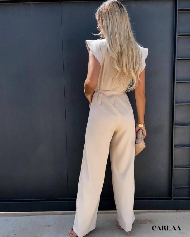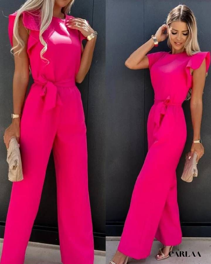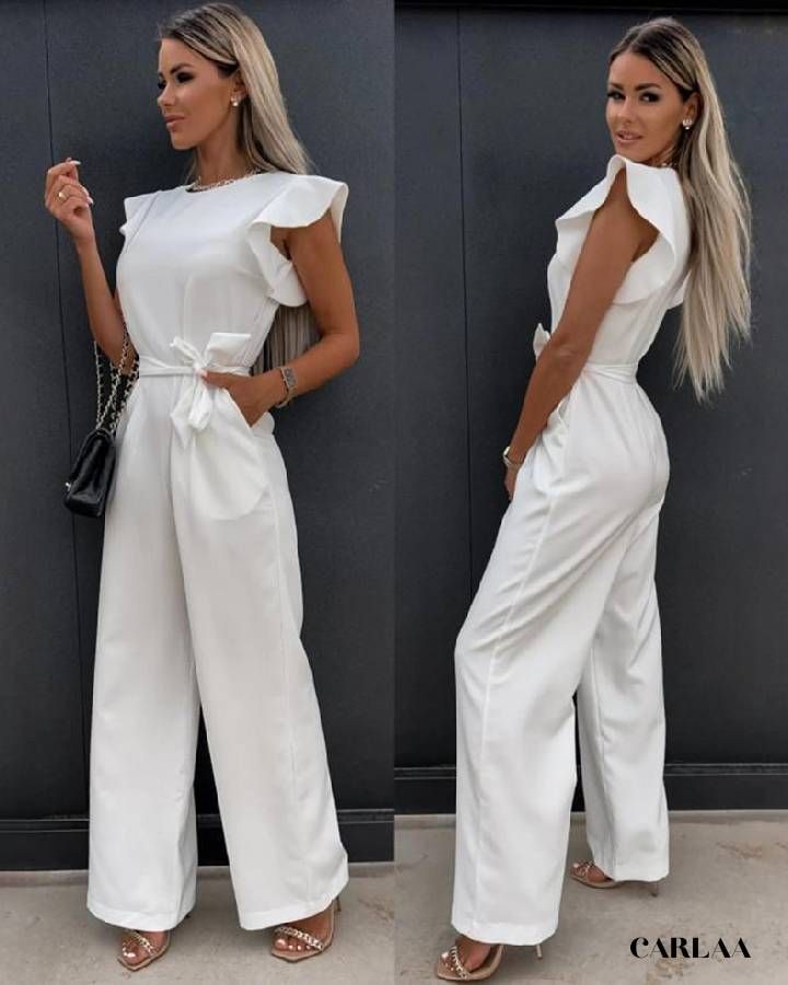 La silhouette moderne et féminine de cette combinaison met en valeur votre corps tout en offrant un style chic. Les détails élaborés, tels que la ceinture à nouer et les manches volantées, confèrent à ce vêtement un caractère unique, idéal pour une allure distinguée.