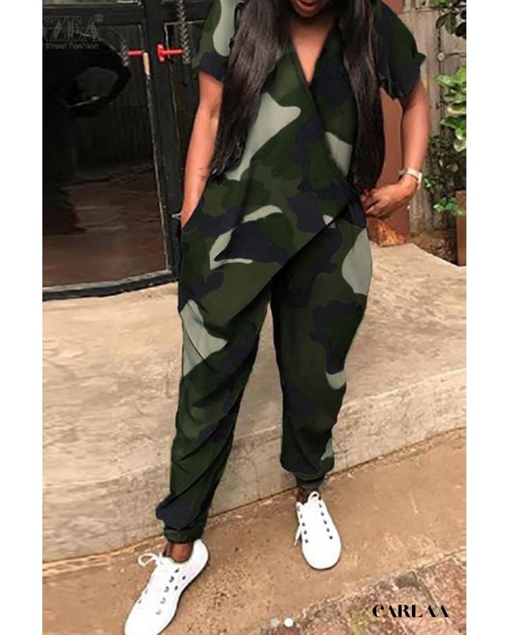Chez Carlaa, on adore sortir des sentiers battus pour vous présenter les plus belles pièces en matière de combinaison. C’est avec une grande joie qu’on vous présente la combinaison camouflage très tendance ! Un tissu en polyester de haute qualité pour vous éviter de transpirer toute la journée. Elle se compose de cheville élastique pour un maintien maximal. On adore le style militaire ! Affirmer votre personnalité avec cette combi camouflage unique.
