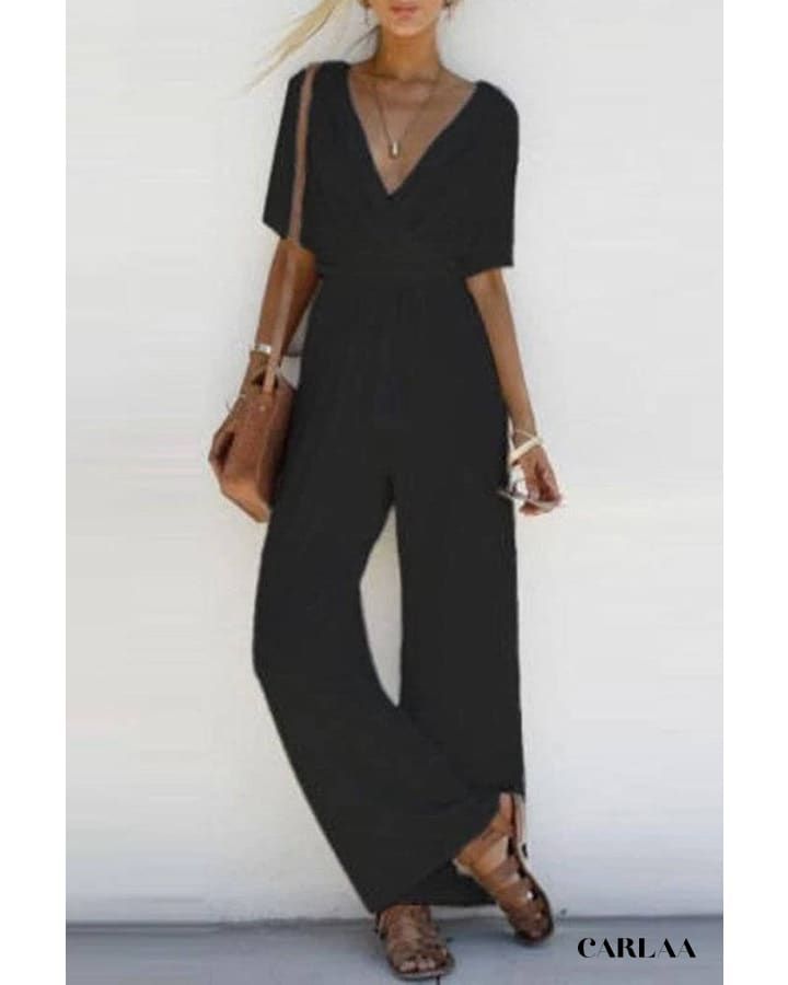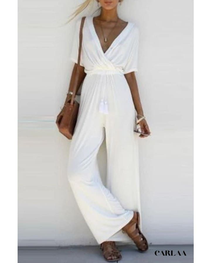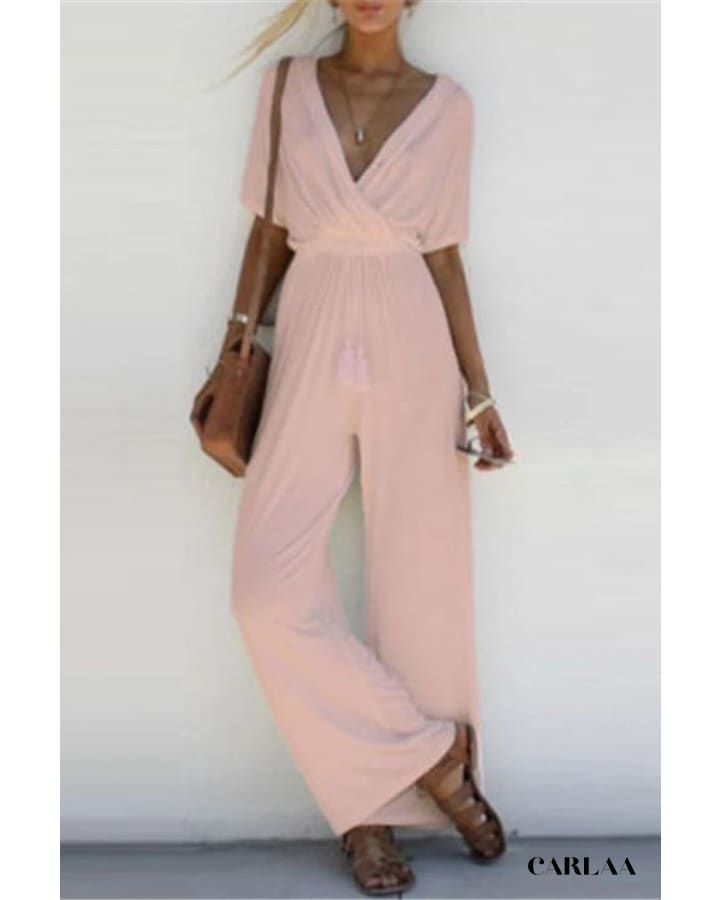 Vous adorerez ajouter cette combinaison pour femme à manches courtes dans votre dressing pour vous promener dans les environs. Taillée dans une silhouette décontractée, cette combinaison est fabriquée en polyester-coton, ce qui vous permettra de rester confortable toute la journée. D’une agréable teinte unie, cette combinaison présente une encolure en V avec un motif enveloppant, des manches courtes et un cordon de serrage pompon que vous adorerez. Associez-la à des sandales et à des accessoires simples pour une journée amusante sous le soleil.