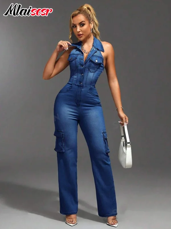 Combinaison femme jean sans manche