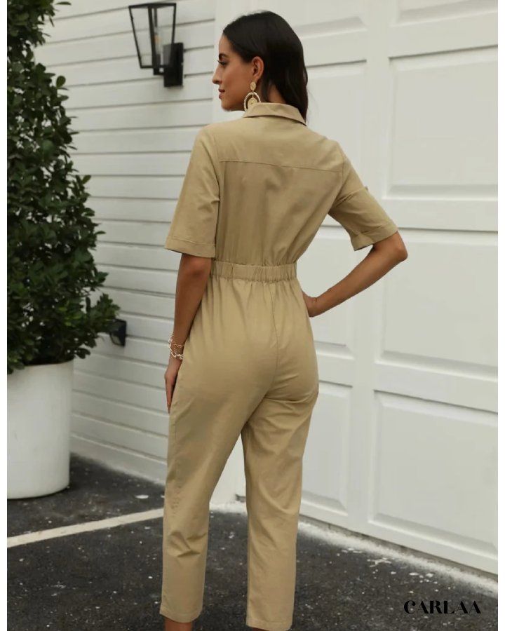 Mise en avant par des détails de style soigneusement travaillés, la combinaison femme kaki chic affiche une coupe flatteuse et un col en V qui met en valeur votre silhouette. Sa ceinture ajustable vient souligner délicatement votre taille, apportant une touche d’élégance supplémentaire à l’ensemble. Chaque élément a été pensé pour renforcer votre assurance et votre allure.