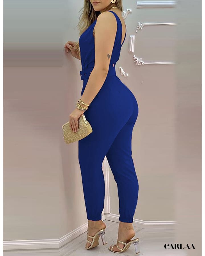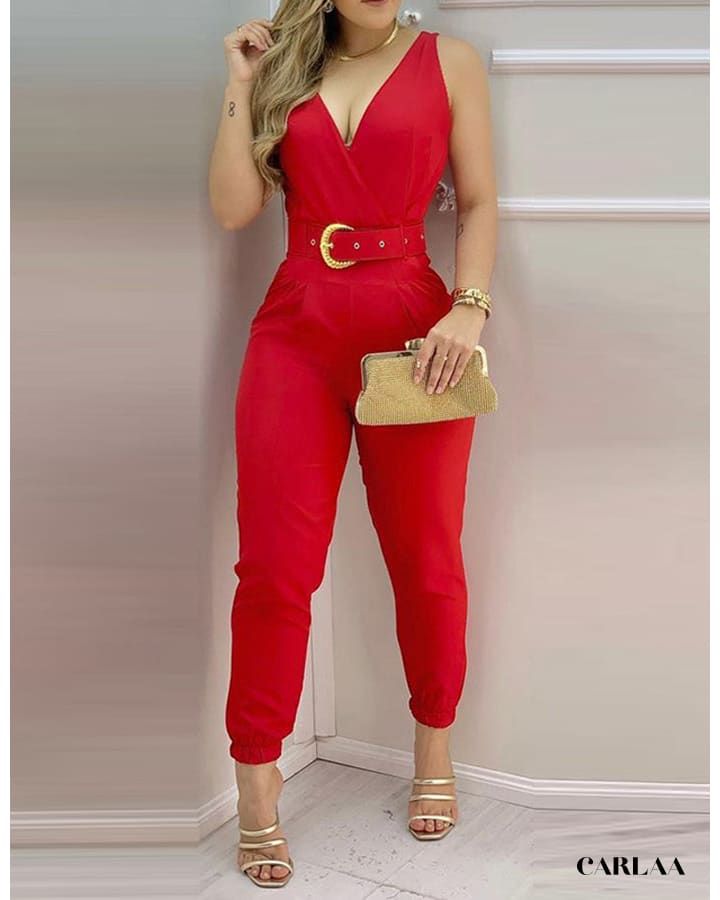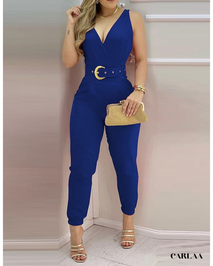 La ceinture à boucle dorée souligne délicatement la taille et ajoute une note d’élégance à l’ensemble. Avec cette combinaison, créez votre look quotidien tout en optant pour une tenue de soirée chic et raffinée qui ne manquera pas d’attirer l’attention.