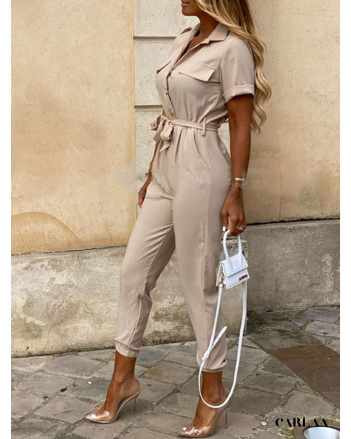 Cette combinaison offre une solution pratique pour toutes celles qui souhaitent allier élégance et confort au quotidien. Avec ses poches fonctionnelles et sa ceinture,. elle facilite la vie tout en respectant les codes de la tendance mode. Elle est parfaite pour un look à la fois chic et confortable, idéal pour les journées actives.