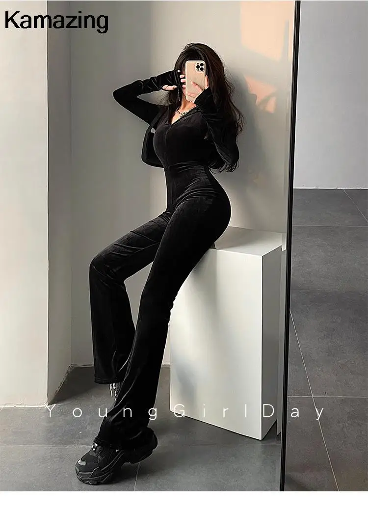 Combinaison moulante en velours noir pour femme