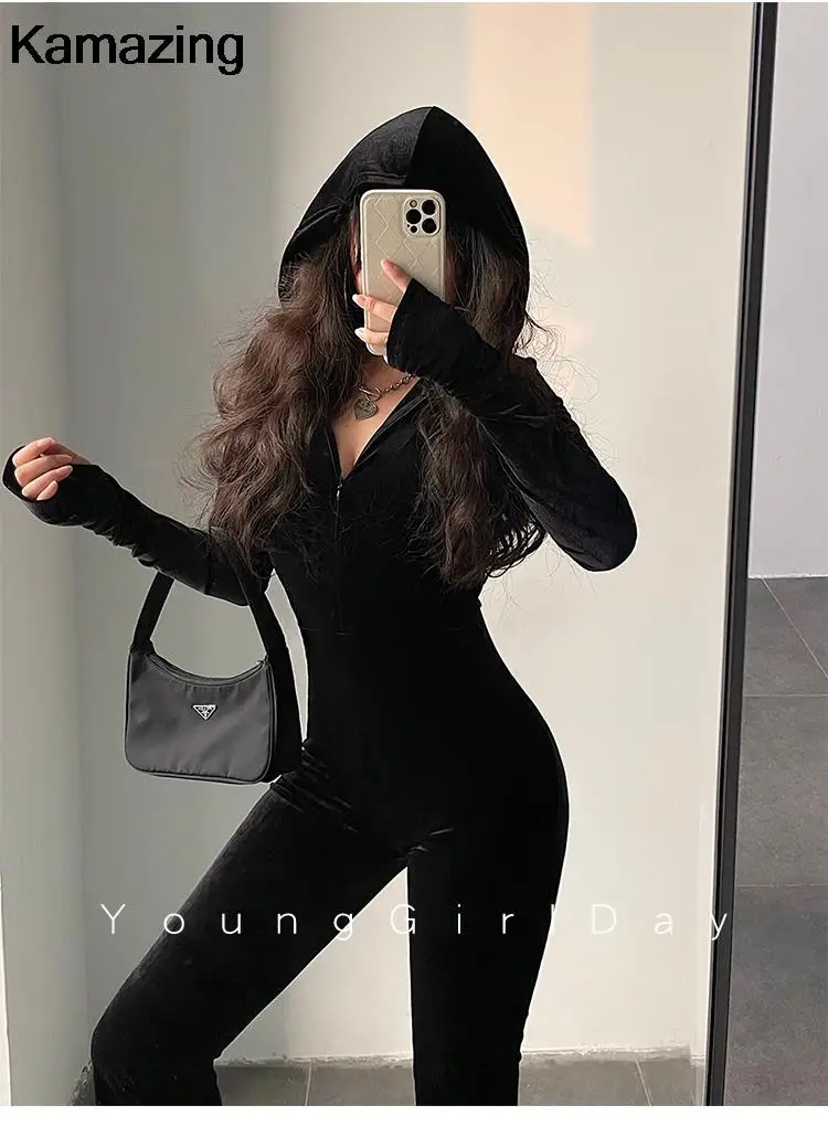 Cet objet : Combinaison moulante en velours noir pour femme