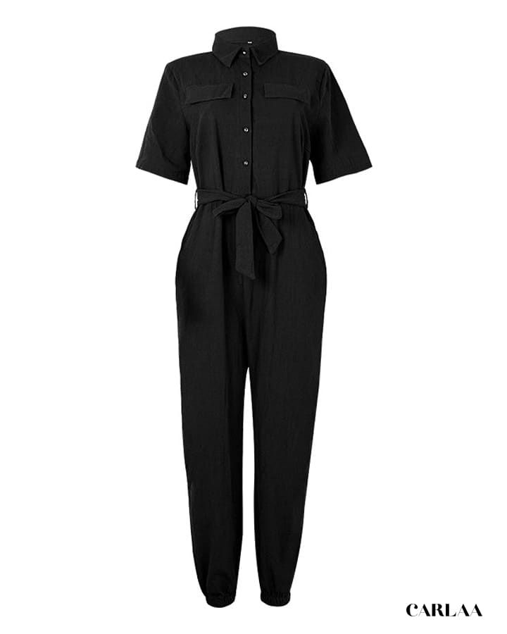 La combinaison noire à manches courtes répond à tous vos besoins vestimentaires, que ce soit pour une sortie décontractée ou un événement semi-formel. Avec sa coupe soignée et son tissu agréable, elle vous offre une sensation de confort et de liberté de mouvement, vous permettant de vous sentir à l’aise tout en affichant un look stylé.
