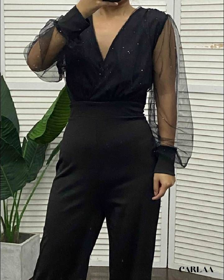 La combinaison chic noire à manches longues incarne un look intemporel et sophistiqué qui ne manquera pas de faire tourner les têtes. Son design élégant sera immédiatement remarqué, offrant une tendance mode qui s’adapte aussi bien à votre garde-robe qu’à votre personnalité unique.