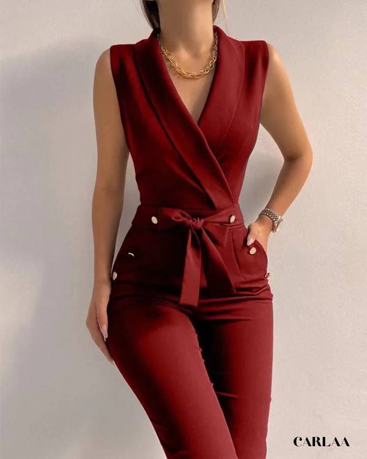 La combinaison polyvalente se distingue par sa ceinture à nouer qui sublime votre silhouette tout en offrant un confort stylé. Le design croisé met en valeur votre taille et apporte une touche de sophistication remarquable. Vous pourrez ainsi vous sentir à l’aise sans compromettre votre allure.