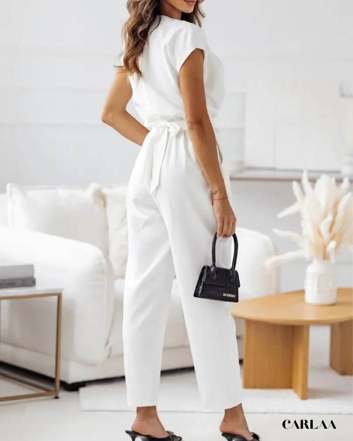 Confectionnée dans un tissu fluide et confortable, cette combinaison est idéale pour toutes les saisons. Sa versatilité vous permet de l’accessoiriser à votre goût, ce qui en fait un choix parfait pour celles qui recherchent un style polyvalent et chic au quotidien.