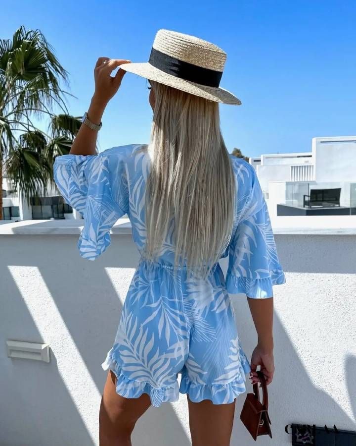 Cette combinaison short femme en bleu est un véritable atout charme pour votre garde-robe estivale. Son imprimé tropical apporte une touche vibrante et rafraîchissante, idéale pour faire sensation lors de vos sorties. Chic et tendance, elle s’adapte parfaitement à toutes vos occasions d’été, que ce soit une journée à la plage, une soirée entre amis ou une sortie en ville. Avec cette pièce, l’élégance décontractée devient accessible à toutes.