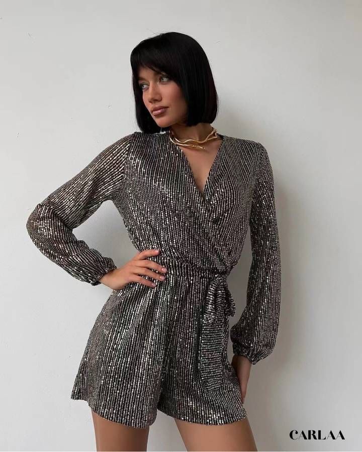 Plongez dans l’univers du glamour avec notre combishort scintillant, la pièce maîtresse idéale pour faire de vous la star de vos soirées. Conçu pour captiver tous les regards, ce vêtement audacieux allie élégance et confort, vous permettant de révéler votre personnalité tout en vous sentez à l’aise. Préparez-vous à briller lors de chaque sortie et à transformer vos nuits en véritables moments de magie.