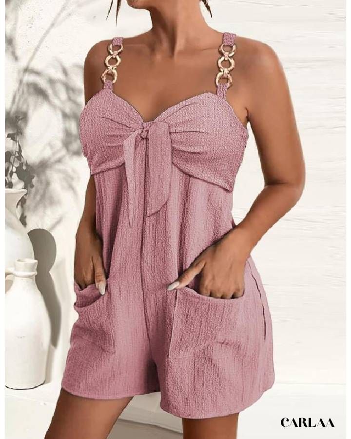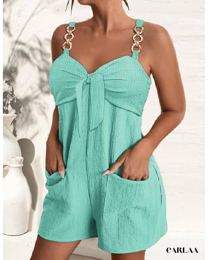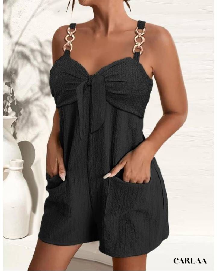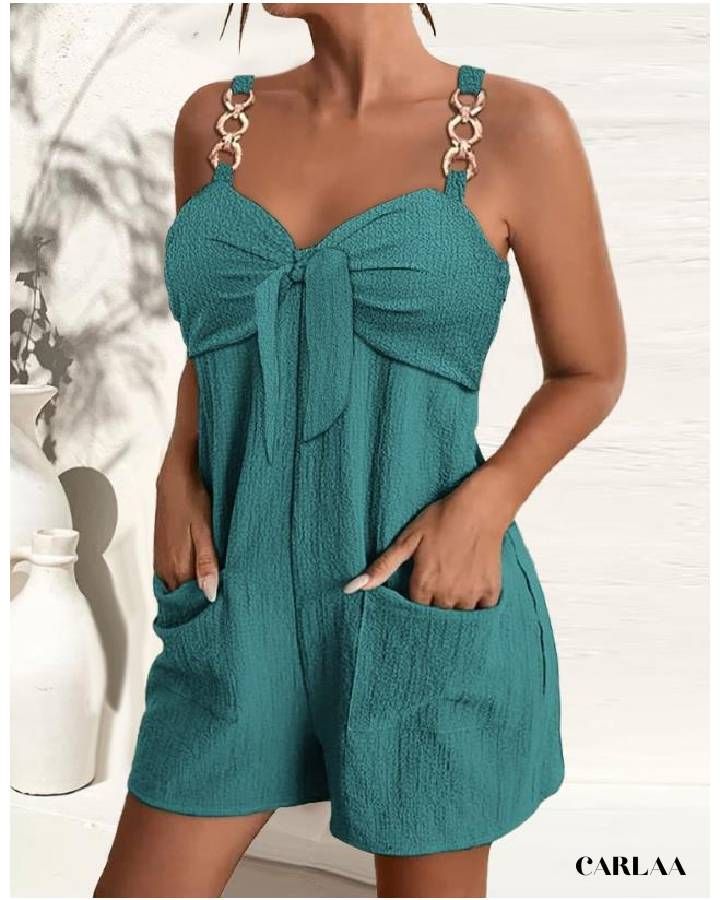 Polyvalente, cette combishort élégante se marie parfaitement avec d’autres vêtements de votre dressing. Dotée de poches pratiques, elle allie confort et style, vous permettant de passer facilement d’une sortie décontractée à un moment de détente entre amis.