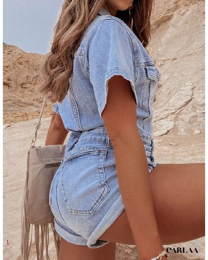 Découvrez le combishort en jean, l’allié parfait pour un look décontracté et élégant qui rehaussera votre garde-robe tout en vous offrant confort et style, disponible dès maintenant sur combinaison femme.