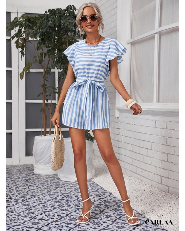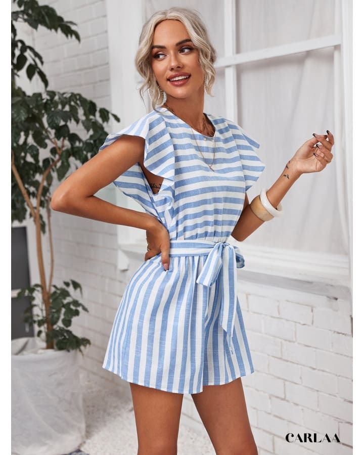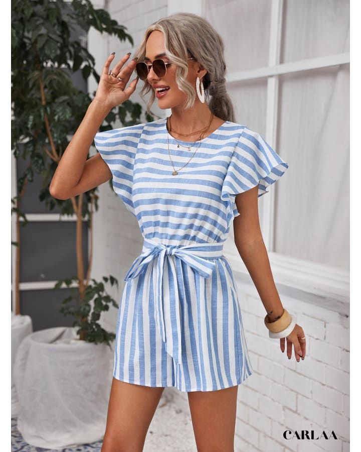 Avec sa coupe flatteuse, notre combishort rayé a été conçu pour mettre en valeur vos courbes féminines. Son effet est accentué par une ceinture à nouer qui marquera votre taille, tout en ajoutant une touche séduisante à votre tenue. Enfilant ce vêtement, vous ressentirez instantanément une montée de confiance en soi et une envie d’exprimer votre personnalité.