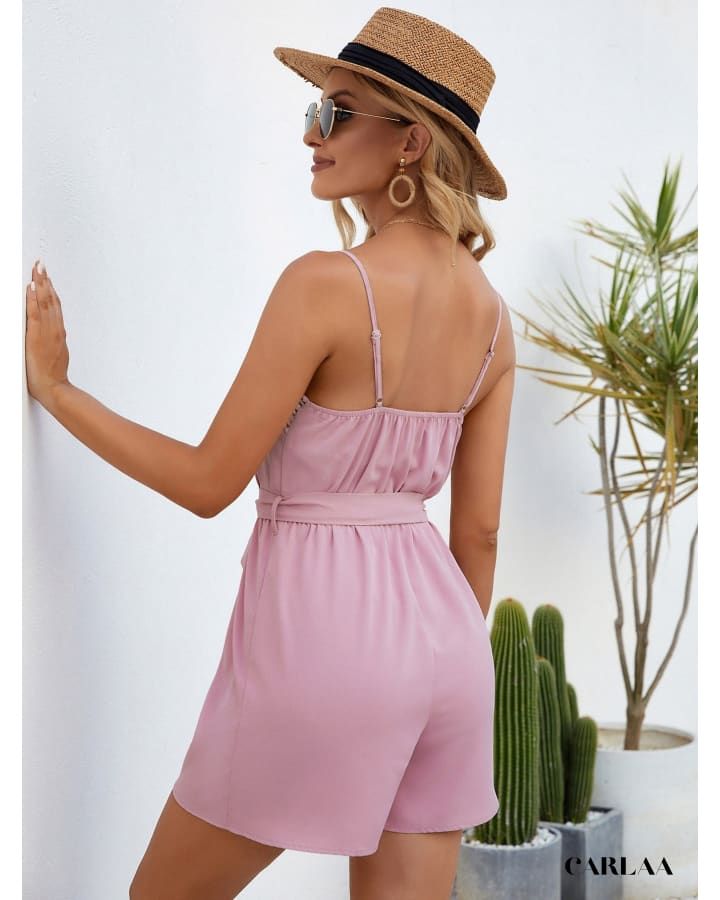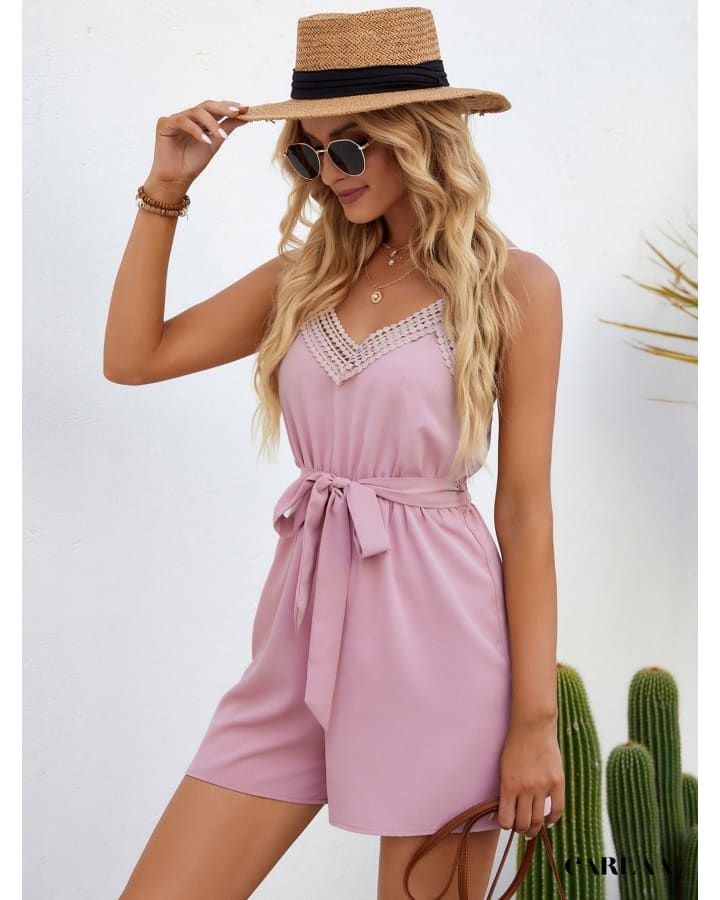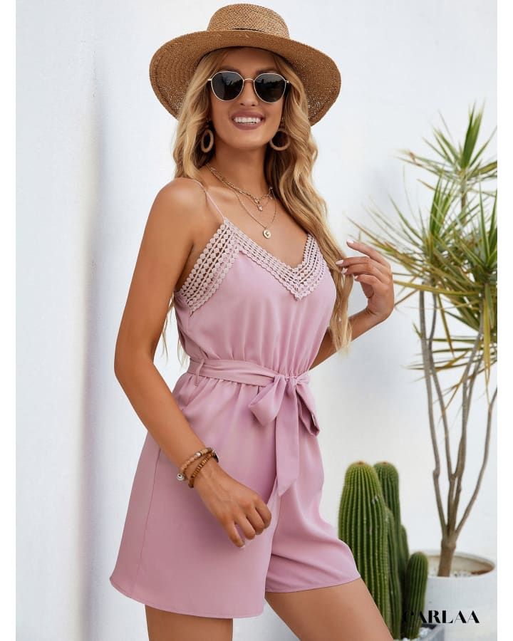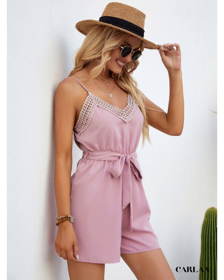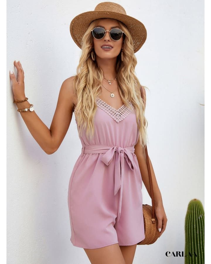 Affirmez votre style avec le combishort rose caraco uni à dentelle