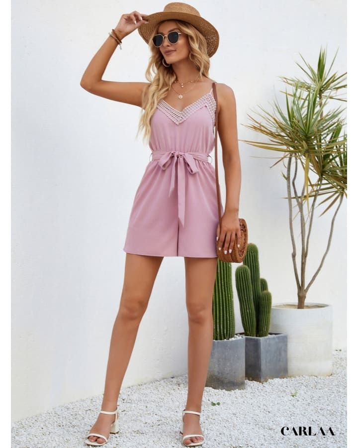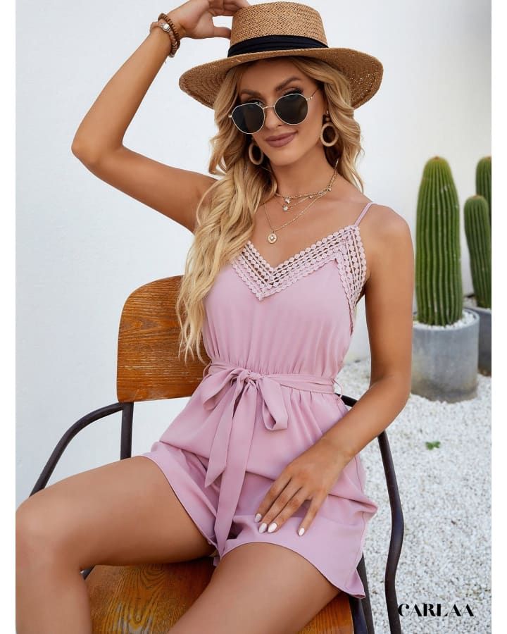 Son allure raffinée et sa légèreté en font le choix idéal pour les chaudes journées d’été. Portez-le fièrement lors de vos sorties, vacances ou événements spéciaux et laissez-vous séduire par son attrait mode. Avec le combishort rose à dentelle, vous êtes assurée de faire sensation et de briller en toute occasion.