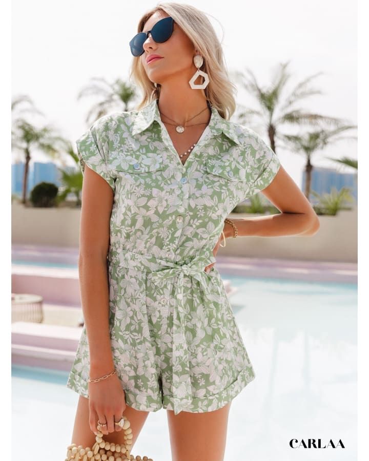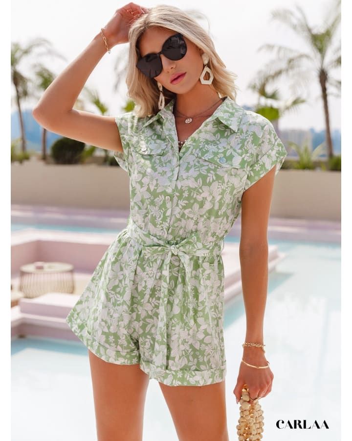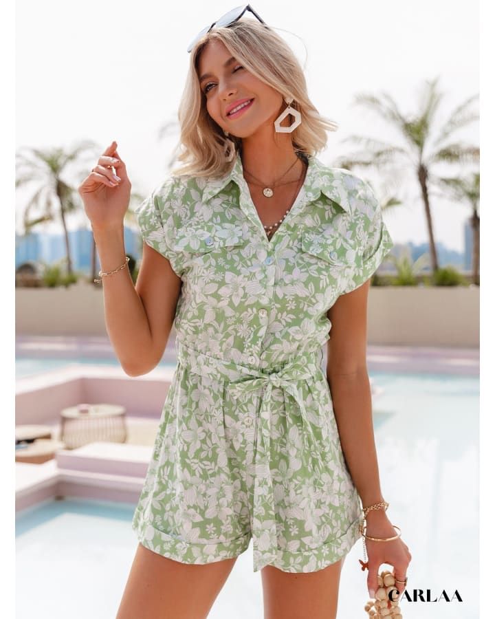 Transformez votre été avec la Combishort Verte Florale, un vêtement à la fois chic et décontracté qui évoque légèreté et fraîcheur.