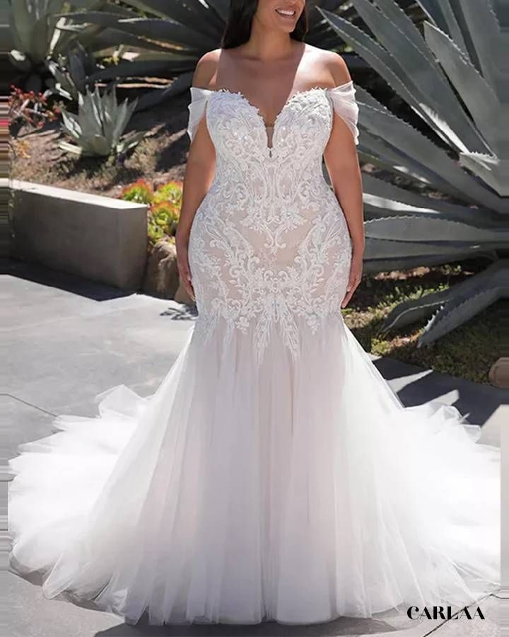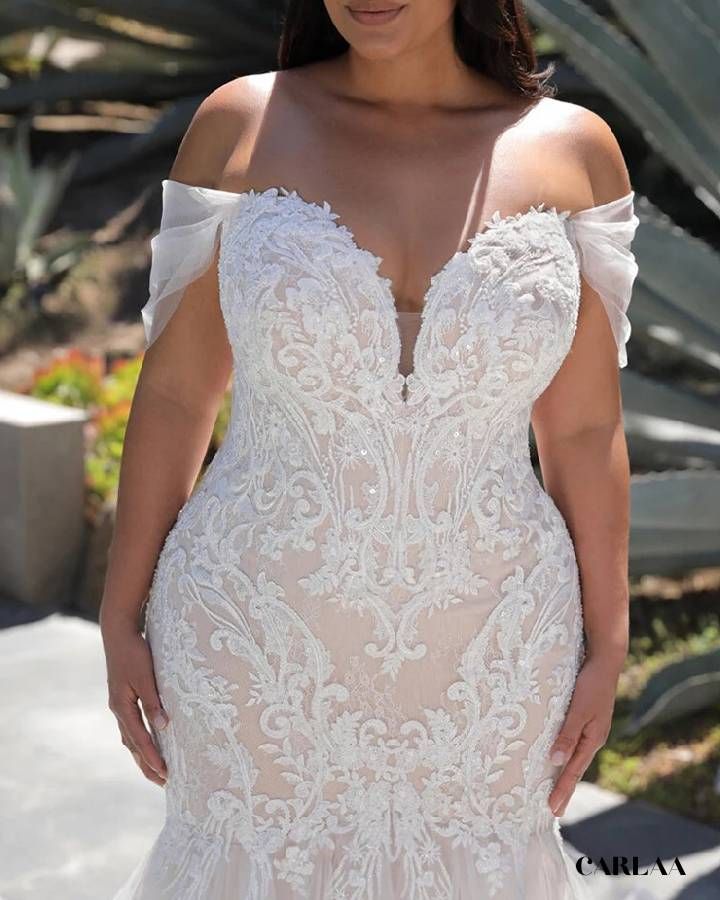Cette robe élégante met en avant votre beauté tout en offrant un confort agréable. Que vous soyez une mariée, une invitée ou une témoin, vous serez éblouissante dans cette robe de mariage qui célèbre les formes généreuses, intégrant à la fois glamour et sophistication.