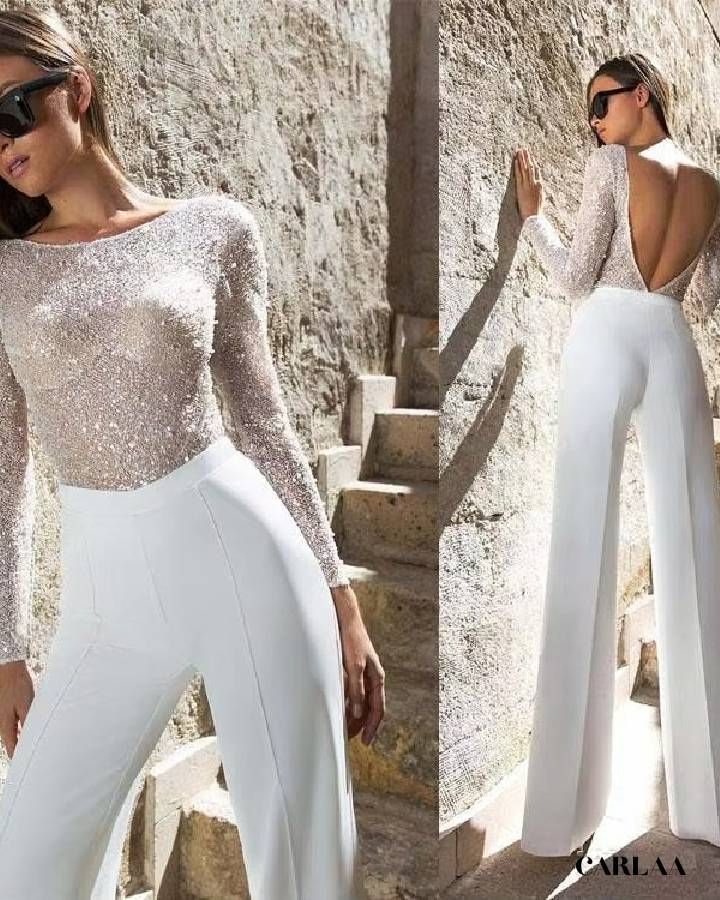 Portez cette combinaison de mariée et visualisez-vous en train de briller le jour de votre mariage. Cette tenue ne transforme pas seulement votre apparence, elle booste également votre confiance en soi, vous permettant de dégager un charme irrésistible. Avec la combinaison femme, chaque regard se tournera vers vous.